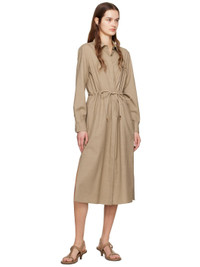 Grained calfskin heeled sandals in tan. · Open toe · Elasticized slingback strap · Logo-embossed grained leather footbed · Leather kitten heel with rubber injection · Suede sole · Heel: H2" Supplier color: Hazelnut Upper: calfskin. Sole: leather, rubber. Made in Italy 241349F125005