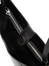 trapezoid leather tote bag Highlights - Black - Trapezoid shape - Single top handle - Magnetic fastening - Zip fastening compartment Made in Italy Composition Outer: Calf Leather 100%