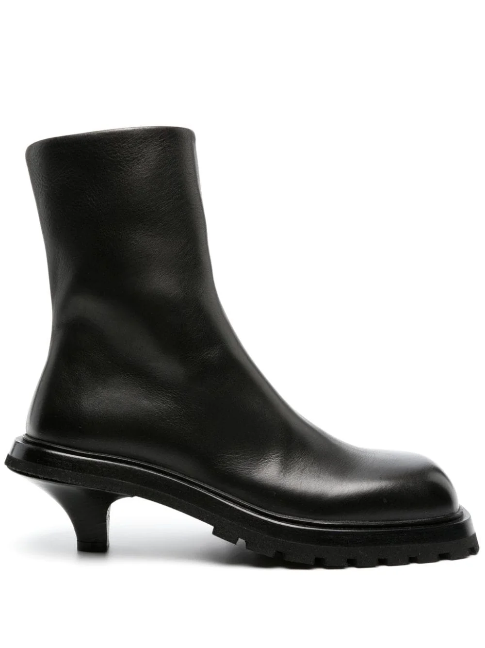 70mm Trillo leather ankle boots Highlights - Black - Calf leather - Smooth grain - Short side zip fastening - Branded leather insole - 70mm mid heel - Square toe Made in Italy Composition Outer: Calf Leather 100% Lining: Calf Leather 100% Sole: Rubber 100%, Calf Leather 100% SIZE & FIT Measurement CIRCUMFERENCE 8.66 in(22 cm) HEEL 2.75 in(7 cm) HEIGHT 6.69 in(17 cm) Sole height 0.98 in(2.5 cm)
