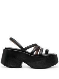 slingback chunky platform sandals slingback chunky platform sandals from MARSÈLL featuring black, leather, multi-way strap design, open toe, square toe, slingback strap, platform sole and chunky rubber sole. Made in Italy Composition Outer: Leather 100% Sole: Rubber 100% Lining: Leather 100% SIZE & FIT Measurement HEEL 3.3 in(8.5 cm) PLATFORM 2.4 in(6 cm)