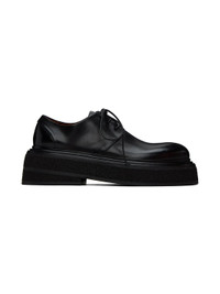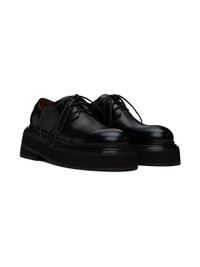 Buffed leather derbys in black. · Lace-up closure · Padded tongue · Grained leather lining · Padded leather footbed · Stacked leather and foam rubber platform midsole · Treaded rubber outsole · Platform: H1.25 in · Heel: H2.25 in Supplier color: Black