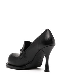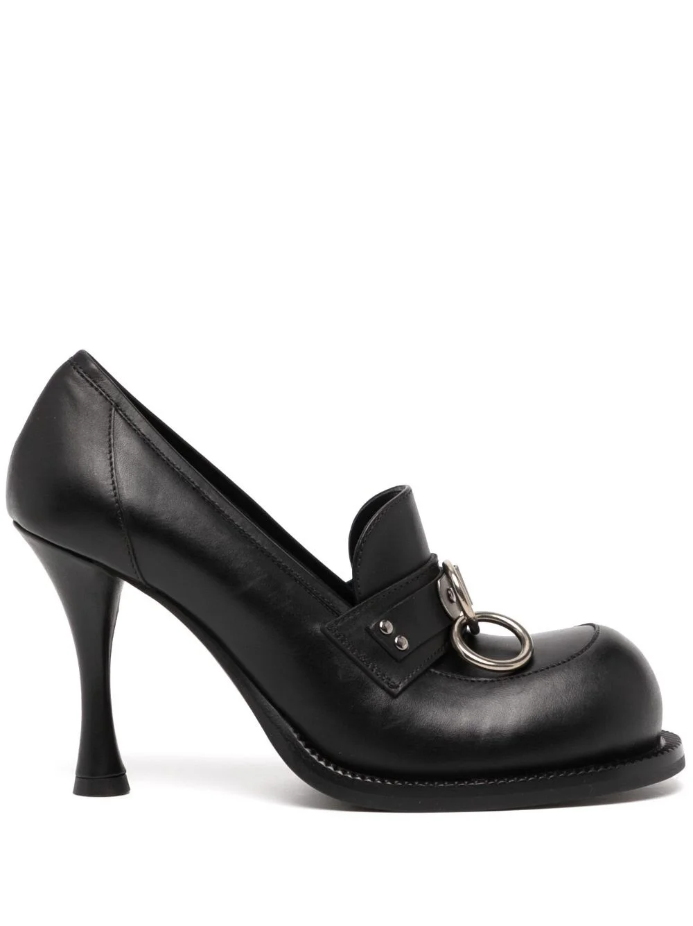 100mm bulb-toe leather pumps Martine Rose's iconic bulb-toe loafer gets a high-heeled update for SS23. This design hybridizes the silhouettes of loafers and pumps to create a unique piece. Crafted from smooth, black calf leather, it boasts the signature dramatically rounded toe with ring hardware detailing elevated on a sculpted heel. Highlights - Black - Calf leather - Ring hardware detailing - Round toe - Slip-on style - 100mm sculpted heel - Branded leather insole - Rubber outsole Made in Italy Composition Leather 100% SIZE & FIT Measurement HEIGHT 3.93 in(10 cm) Sole height 0.39 in(1 cm)