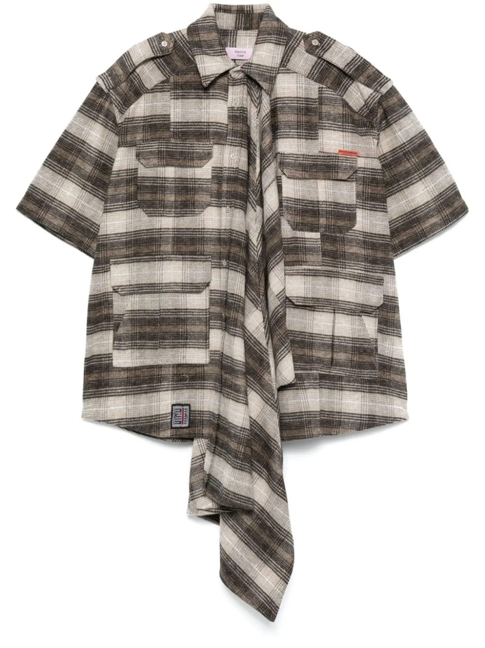 Blanket Safari shirt Highlights - Brown/multicolour - Cotton - Check pattern - Front button fastening - Classic collar - Epaulettes - Drop shoulder - Short sleeves - Two chest flap pockets - Two front flap pockets - Logo patch to the front - Asymmetric hem Imported Composition Cotton 100%