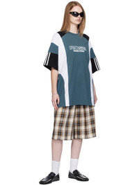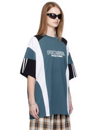 Cotton jersey T-shirt. · Paneled construction · Rib-knit crewneck · Logo printed at front · Dropped shoulders · Stripes at shoulders and sleeves Supplier color: Blue agean rose outline 100% cotton. Made in Portugal 252892F110006