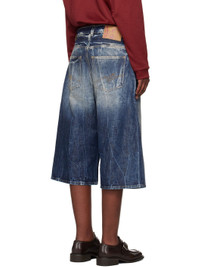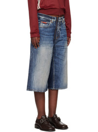 Non-stretch denim shorts. Bleaching, fading, and whiskering throughout. · Belt loops · Five-pocket styling · Exposed zip-fly · Logo patch embroidered at coin pocket · Logo patch at back waistband · Contrast stitching in tan Supplier color: Blue 100% cotton. Made in Italy 251892F088004