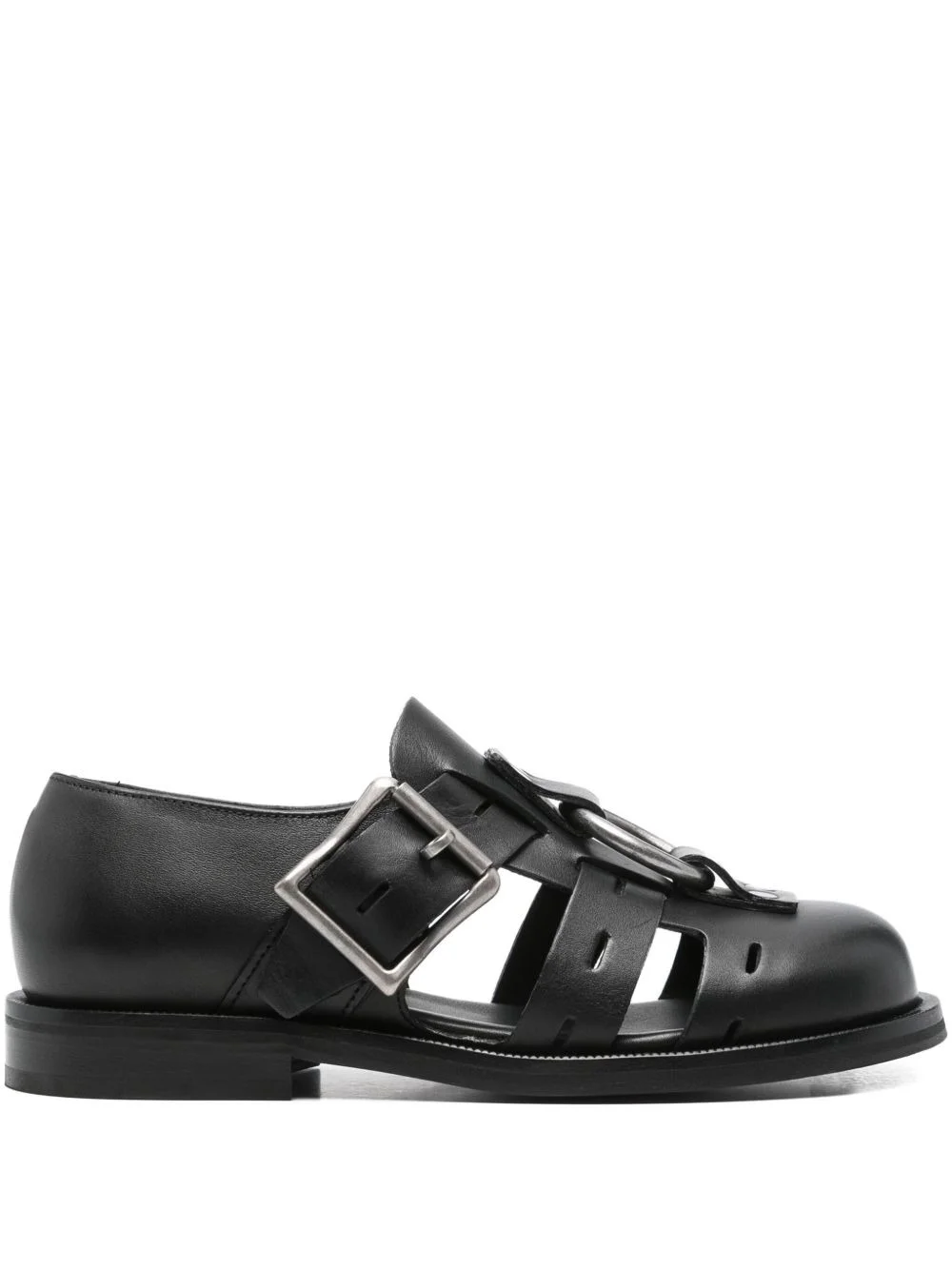 Bondage Belt leather sandals Highlights - Black - Calf leather - Buckle fastening - Cut-out detailing - Ring detail - Flat sole Imported Composition Lining: Calf Leather 100% Sole: Rubber 100%, Calf Leather 100% Outer: Calf Leather 100%