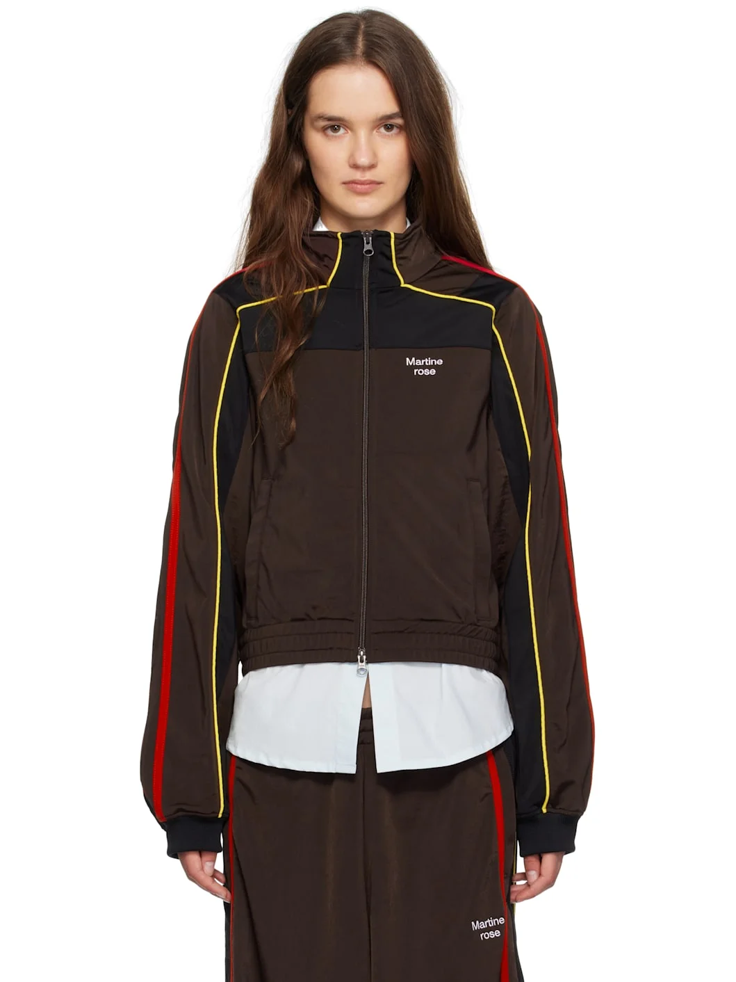 Fleece track jacket. · Stand collar · Two-way zip closure · Stripe appliques and piping at front and sleeves · Logo embroidered at chest · Zip pockets at front · Elasticized hem Supplier color: Brown/Black 100% polyester. Made in Portugal 252892F063000