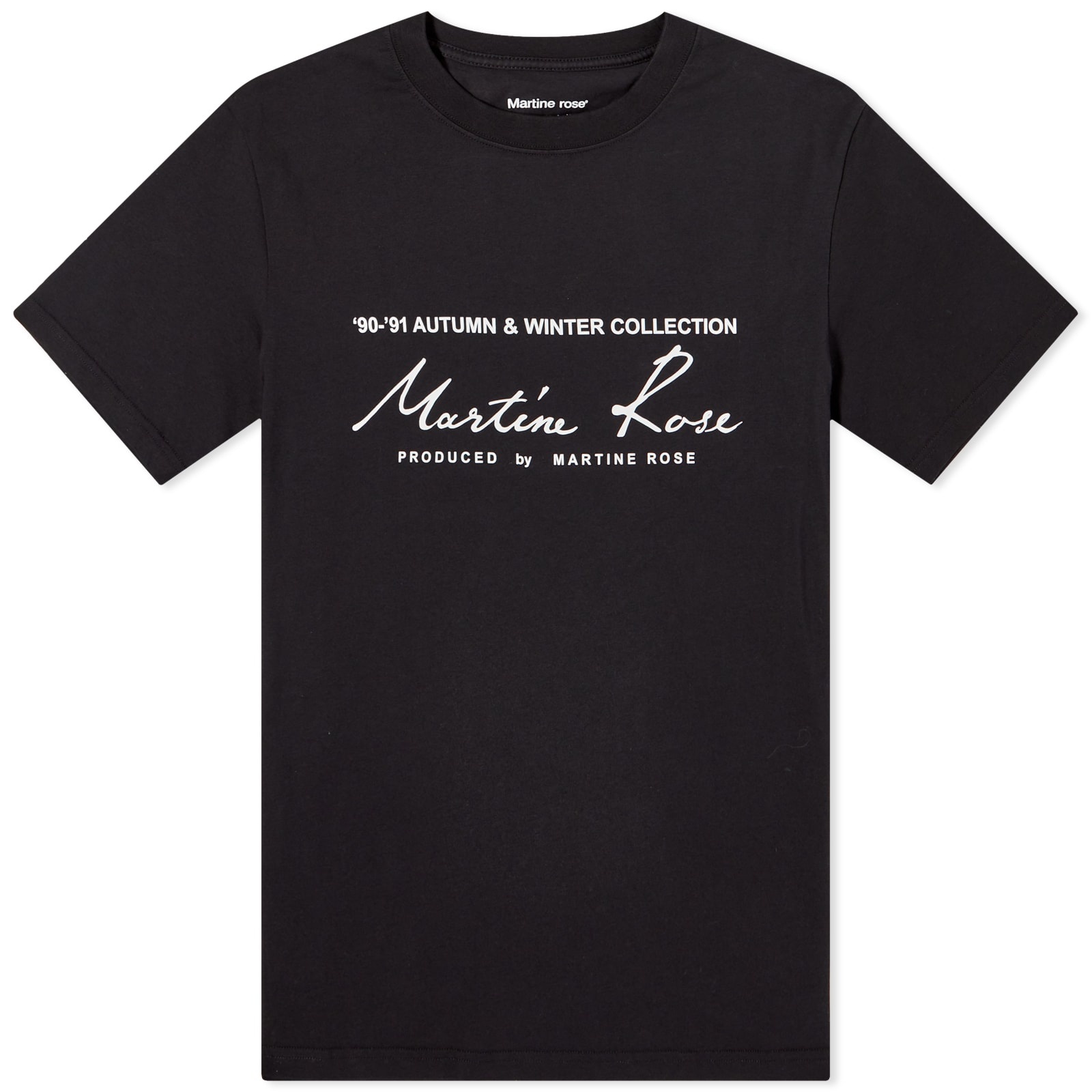 Martine Rose has become one of the most in demand collaborators in fashion, due to the authenticity and commitment to modernity. The classic logo tee features the brand’s signature scribble logo printed in white across the black tee with the ‘90-91 Autumn & Winter collection’. - 100% Cotton - Ribbed Crewneck - Ribbed Trims - Printed Branding