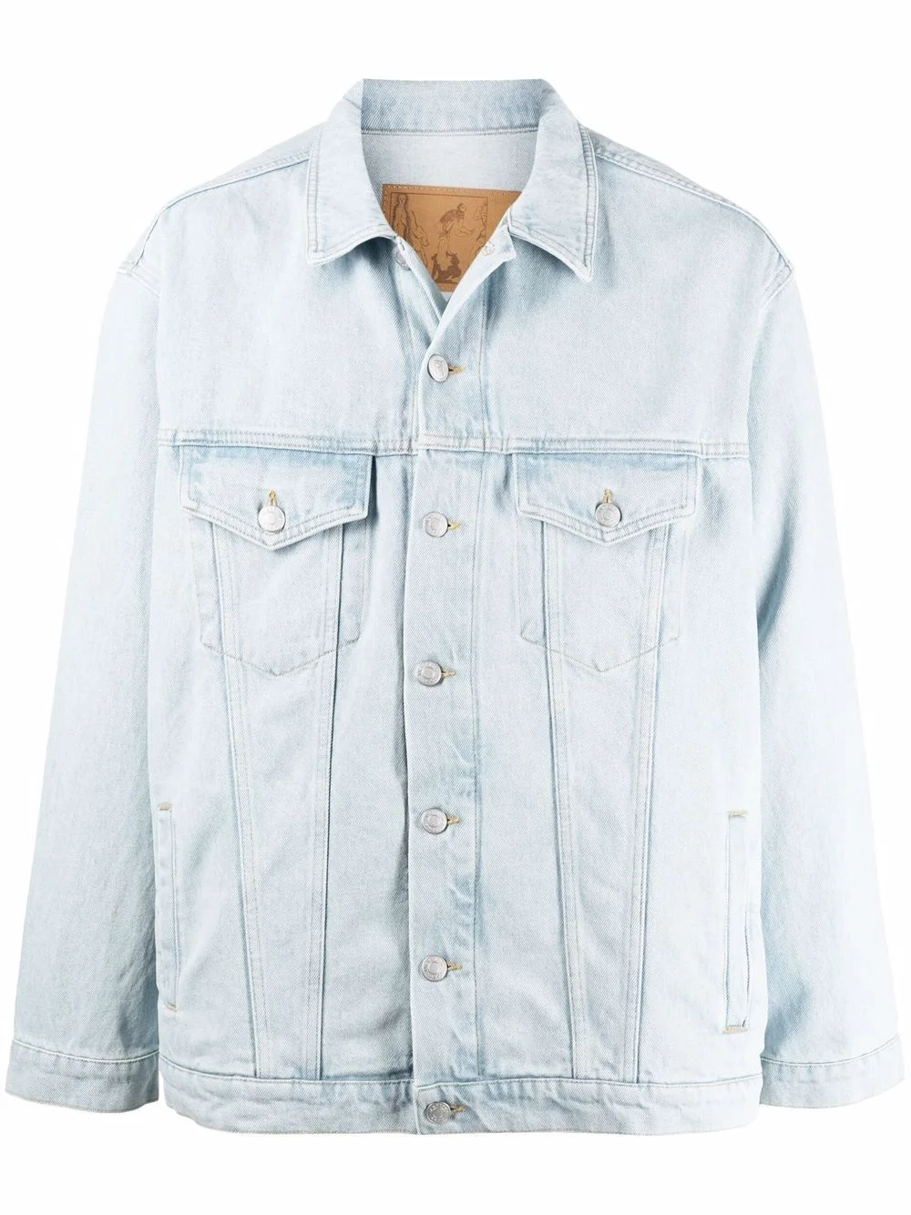 logo-print denim jacket Highlights - Light blue - Cotton - Stonewashed - Logo print to the rear - Front button fastening - Classic collar - Two chest patch pockets - Long sleeves - Two side welt pockets - Straight hem - When buying this unisex item, keep in mind that it is graded in standard men's sizing. Made in Italy Composition Cotton 100% SIZE & FIT Model measurements Height 6 ft 2 in(1.87 m) Bust/Chest 36.41 in(92.5 cm) Hips 37 in(94 cm) Waist 29.52 in(75 cm) FittingInformation This piece fits true to size. We recommend you get your regular size Cut for a loose fit Made with a mid-weight non-stretch fabric