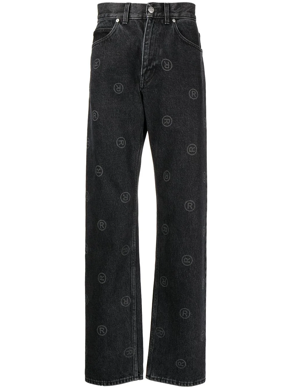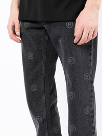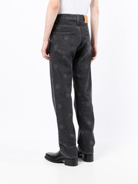 logo-print straight-leg jeans Martine Rose transforms these straigth-leg jeans with a branding detail. Crafted from cotton in a black hue, this pair is fully adorned with a logo print. Made in Italy Composition Cotton 100% SIZE & FIT Model measurements Height 5 ft 11 in(1.8 m) Bust/Chest 28.34 in(72 cm) Hips 35.43 in(90 cm) Waist 23.62 in(60 cm) FittingInformation This piece is unisex. Please take care when selecting your size Designed for a loose fit for men and an oversized fit for women Made with a mid-weight non-stretch fabric