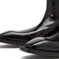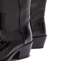 Mixing up pebbled and crocodile leather, these Martine Rose Cowboy Boots are a masterclass in texture and design. They’re styled with a square toe and two side pull tabs for an authentic look, finished with a low block heel beneath. - 100% Leather - Side Pull Tabs - Block Heel - Made in Italy