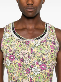 layered floral-print tank top Highlights - Yellow/multicolour - Layered design - Jersey texture - Fine ribbed - All-over floral print - Scoop neck - Half front zip fastening - Sleeveless - Straight hem - When buying this unisex item, keep in mind that it is graded in standard men's sizing. Imported Composition Cotton 48%, Modal 48%, Elastane 4% SIZE & FIT Model measurements Height 5 ft 10 in(1.78 m) Bust/Chest 31.49 in(80 cm) Hips 37 in(94 cm) Waist 23.62 in(60 cm) FittingInformation This unisex piece is designed for a slim fit whether you usually select women's or men's sizes Made from a midweight stretch fabric, this piece offers elasticity and flexibility when worn