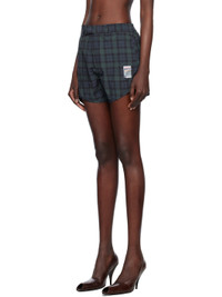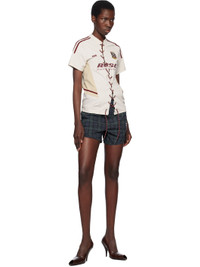Nylon taffeta shorts. Trompe l'œil check pattern throughout. · Belt loops · Partially elasticized waistband · Three-pocket styling · Zip fly · Logo patch at leg Supplier color: Black Body: 100% polyamide. Lining: 100% cotton. Made in Italy 251892F088005