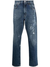 painter-wash straight jeans Highlights - Navy blue/off-white - Cotton - Straight leg - Paint splatter detail - Mid-rise - Belt loops - Front button and zip fastening - Classic five pockets - When buying this unisex item, keep in mind that it is graded in standard men's sizing. Made in Italy Composition Cotton 100% SIZE & FIT Model measurements Height 6 ft 1 in(1.85 m) Bust/Chest 35.82 in(91 cm) Hips 37.79 in(96 cm) Waist 29.13 in(74 cm) FittingInformation This piece fits true to size. We recommend you get your regular size Cut for a loose fit Made with a mid-weight non-stretch fabric