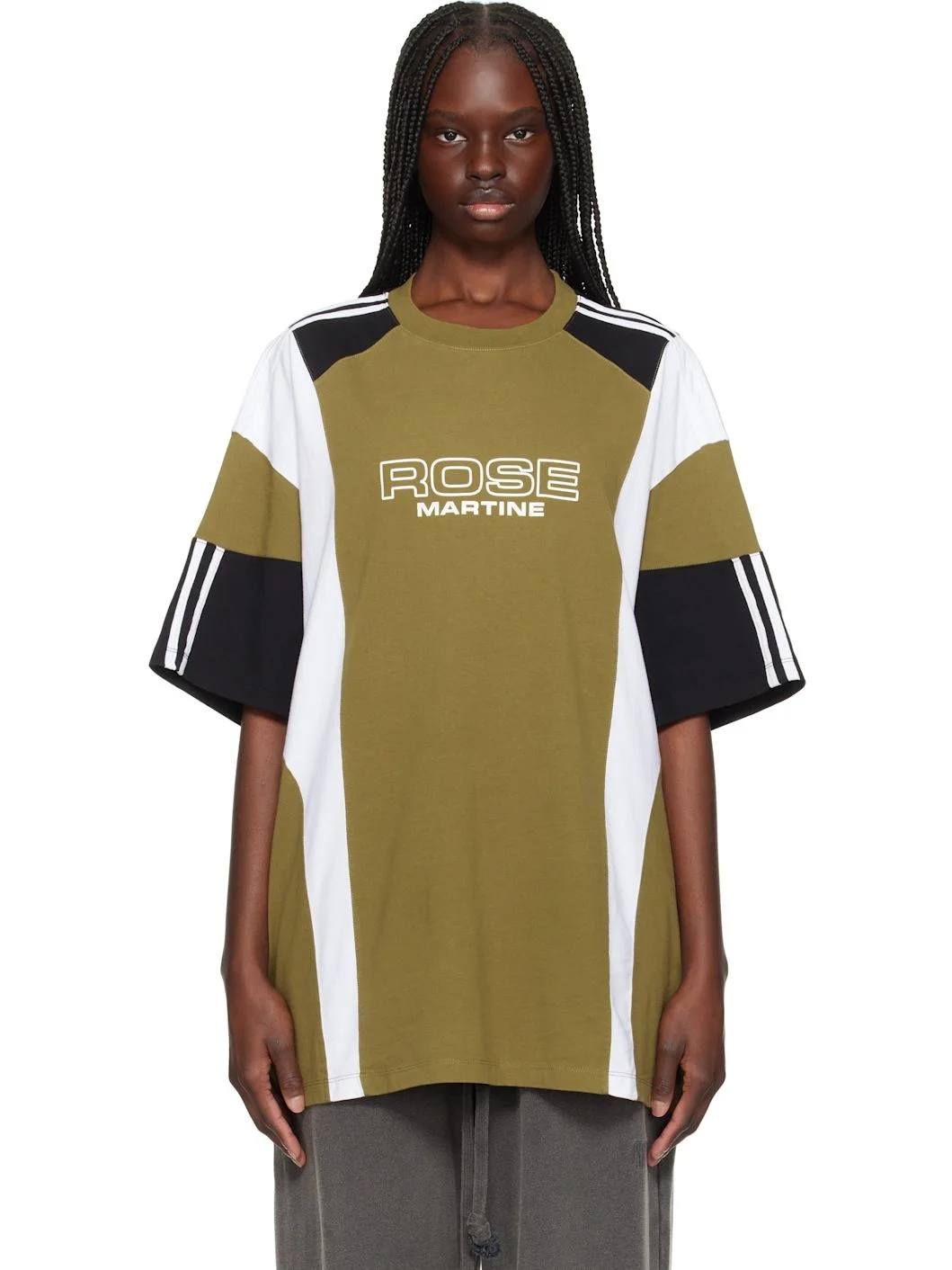 Green & White Oversized Panelled T-shirt