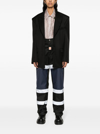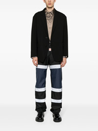 Safety straight-leg trousers Highlights - Black/grey/navy blue - Colour-block design - Logo patch to the front - Logo print to the rear - Reflective detailing - High waist - Belt loops - Rear elasticated waistband - Concealed fly and button fastening - Two side inset pockets - Rear zip-fastening pocket - Straight leg - When buying this unisex item, keep in mind that it is graded in standard men's sizing. Made in Italy Composition Polyester 100% SIZE & FIT Model measurements Height 5 ft 9 in(1.76 m) Bust/Chest 31.1 in(79 cm) Hips 36.61 in(93 cm) Waist 24.8 in(63 cm) FittingInformation This piece is unisex and is designed with a straight-cut over the leg whether you usually select women's or men's sizes The partially elasticated waistband offers increased movement and comfort at the waist Made from a midweight non-stretch fabric This piece fits true to size – take your usual size Washing instructions Machine Wash