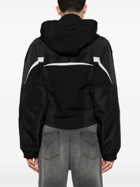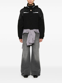 shrunken sports jacket Highlights - Black - Front two-way zip fastening - Two side zip-fastening pockets - Detachable hood - When buying this unisex item, keep in mind that it is graded in standard men's sizing. Imported Composition Polyester 82%, Cotton 18% SIZE & FIT Model measurements Height 5 ft 11 in(1.8 m) Bust/Chest 31.49 in(80 cm) Hips 36.61 in(93 cm) Waist 24.4 in(62 cm) FittingInformation This unisex piece is designed for a slim fit whether you usually select women's or men's sizes Made from a midweight fabric