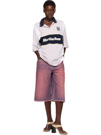 Cotton pique polo. Stripes throughout. · Paneled construction · Striped rib-knit spread collar · Two-button placket · Logo graphic embroidered at chest · Piping and printed logo at front · Vented side seams · Dropped shoulders Part of the exclusive SSENSE HEAT capsule. Supplier color: Grey navy 100% cotton. Made in Portugal 252892F108000
