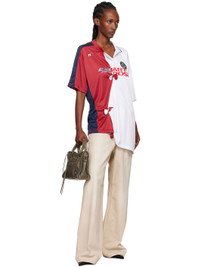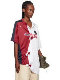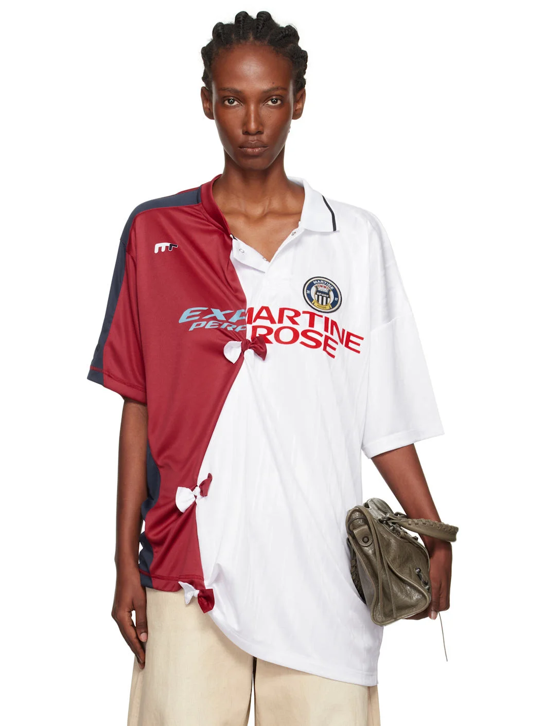 Mesh top. · Paneled construction · Asymmetrical collar and hem · Press-stud placket · Logo patch and flocked logo at chest · Gathering and bow accents at front and back · Logo printed at back Supplier color: White/Burgundy 100% polyester. Made in Portugal 252892F108005