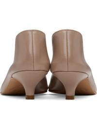 Handcrafted grained kidskin heels in beige. · Pointed toe · Grained kidskin and suede lining · Covered kitten heel with rubber injection · Leather sole · Heel: H1.75" Supplier color: Mink Upper: kidskin. Sole: leather, rubber. Made in Argentina 251778F122017