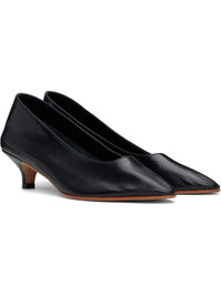 Handcrafted grained kidskin heels in black. · Pointed toe · Grained kidskin and suede lining · Covered kitten heel with rubber injection · Leather sole · Heel: H1.75" Supplier color: Black Upper: kidskin. Sole: leather, rubber. Made in Argentina 251778F122014