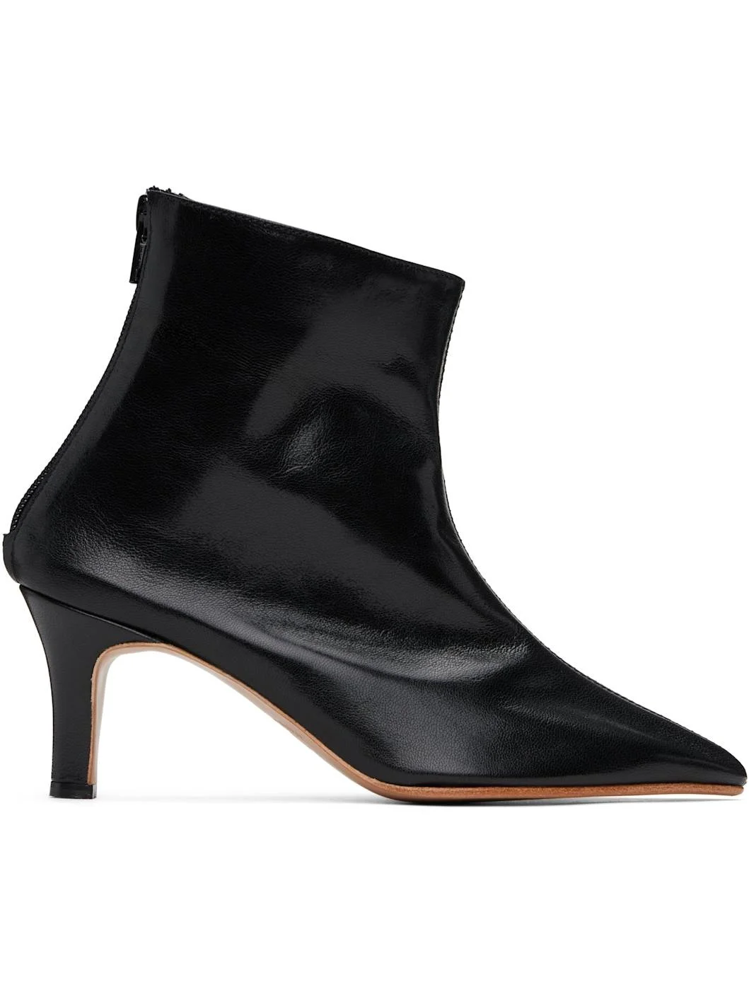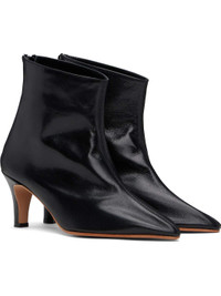 Handcrafted ankle-high grained kidskin boots in black. · Pointed toe · Zip closure at heel counter · Grained kidskin and suede lining · Covered stiletto heel with rubber injection · Leather sole · Heel: H2.75" Supplier color: Black Upper: kidskin. Sole: leather, rubber. Made in Argentina 251778F113001
