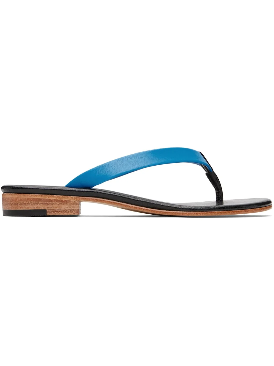 Buffed kidskin flip-flops. · Open toe · Thong-style strap · Logo embossed at footbed · Stacked leather heel with textured rubber injection · Smooth leather sole Supplier color: Olympic blue/Black Upper: kidskin. Sole: leather, rubber. Made in Argentina 251778F124002