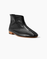 Martiniano's Leone is a back-zip ankle boot in unlined kid leather with a 0.7 inch stacked heel and leather sole. Handcrafted in Argentina using aniline-dyed leather, it showcases natural grain and texture. Designed for understated elegance and lasting comfort.