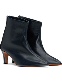 Handcrafted ankle-high grained kidskin boots in navy. · Pointed toe · Zip closure at heel counter · Grained kidskin and suede lining · Covered stiletto heel with rubber injection · Leather sole · Heel: H2.75" Supplier color: Navy Upper: kidskin. Sole: leather, rubber. Made in Argentina 251778F113000