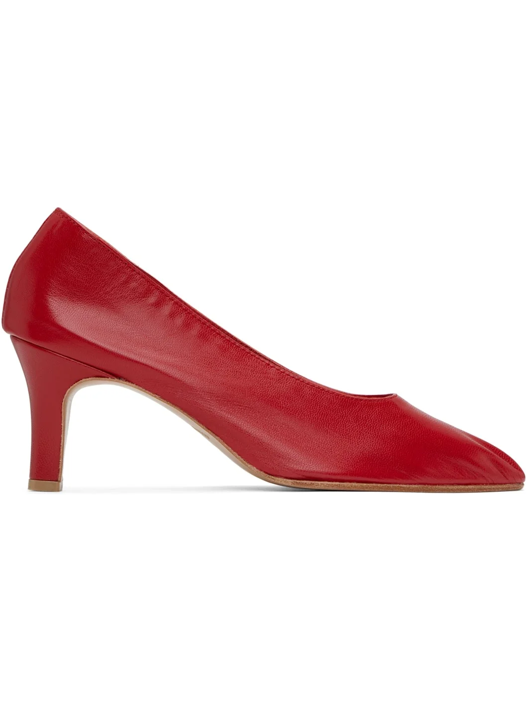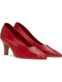 Handcrafted grained kidskin heels in red. · Pointed toe · Grained kidskin and suede lining · Covered heel with rubber injection · Leather sole · Heel: H2.75" Supplier color: Red Upper: kidskin. Sole: leather, rubber. Made in Argentina 251778F122006