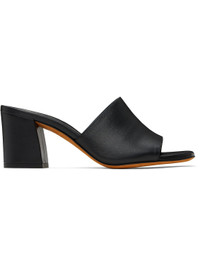Buffed leather heeled sandals in black. · Open toe · Logo embossed at padded leather footbed · Covered block heel with rubber injection · Nubuck sole · Heel: H2.5" Supplier color: Black Upper: leather. Sole: leather, rubber. Made in Italy 251779F125013