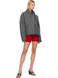 Grained leather heeled sandals. · Open square toe · Crisscrossing straps at vamp · Wedge heel with rubber injection · Nubuck sole · Heel: H3.5" Supplier color: Brun calf Leather. Made in Italy 261779F125001