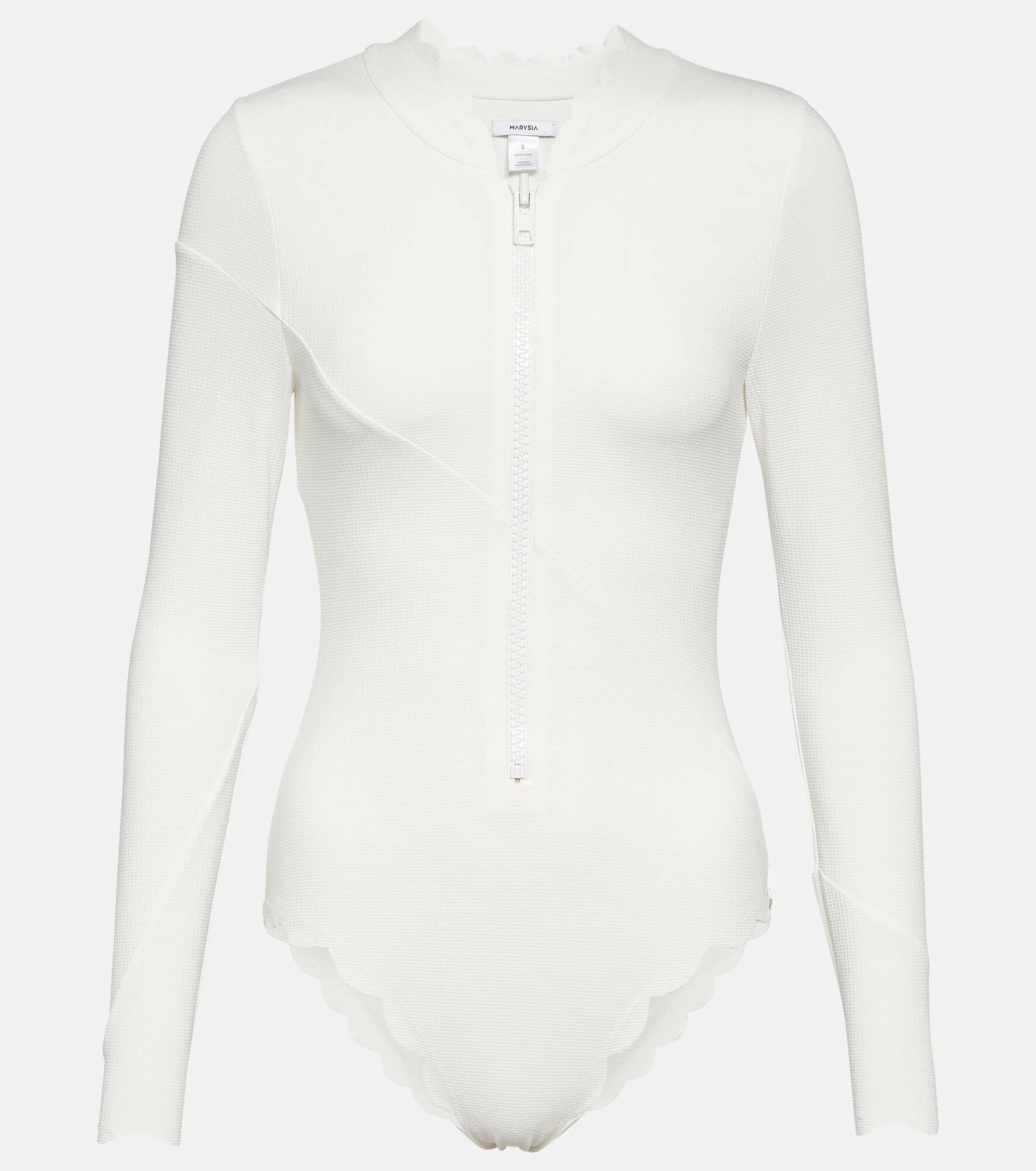 Product Details - Material: 88% polyamide, 12% elastane - Care instructions: hand wash - Made in China - Designer color name: Coconut - Closure: partially zipped front - Item number: P00891340 Size & Fit - True to size - Medium-cut leg - The model seen in the picture is 178cm-5'10", cup size B, and wearing a size XS
