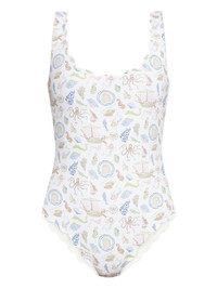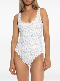 Palm Springs scallop-edge swimsuit Highlights - White - Nautical print - Scallop edge - Be mindful to try on swimwear over your own garments. Imported Composition Polyamide 100% SIZE & FIT FittingInformation This piece is only produced in one size; for help with this item's sizing, refer to our product measurements Washing instructions Read Manufacturer Guidelines