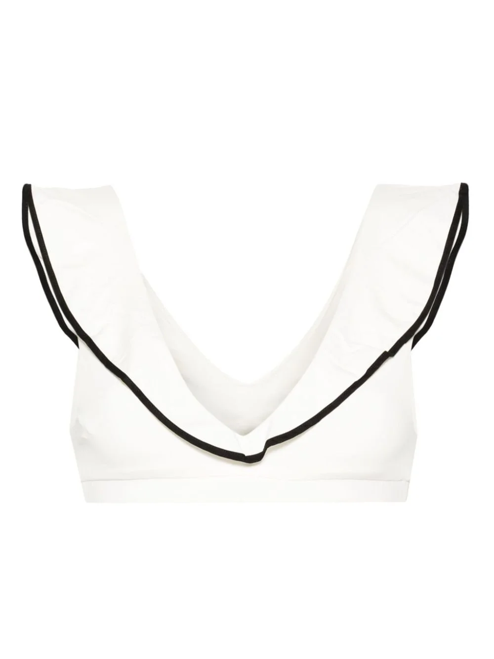Piana ruffle-trim bikini top Highlights - White/black - Stretch-design - Contrasting trim - Ruffled trim - V-neck - Sleeveless - Elasticated underband - V-back - Be mindful to try on swimwear over your own garments. Imported Composition Outer: Polyamide 75%, Spandex/Elastane 25% Lining: Cotton 100%, Polyamide 70%, Spandex/Elastane 30% Washing instructions Hand Wash