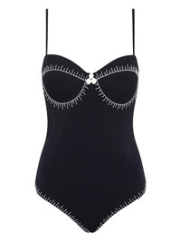 Salento Maillot button detail one piece Highlights - Black - Contrasting stitching - Button detail at neckline - Partially exposed back - Underwired cups - Narrow straps - Be mindful to try on swimwear over your own garments. Imported Composition Polyamide 88%, Elastane 12% Washing instructions Read Manufacturer Guidelines