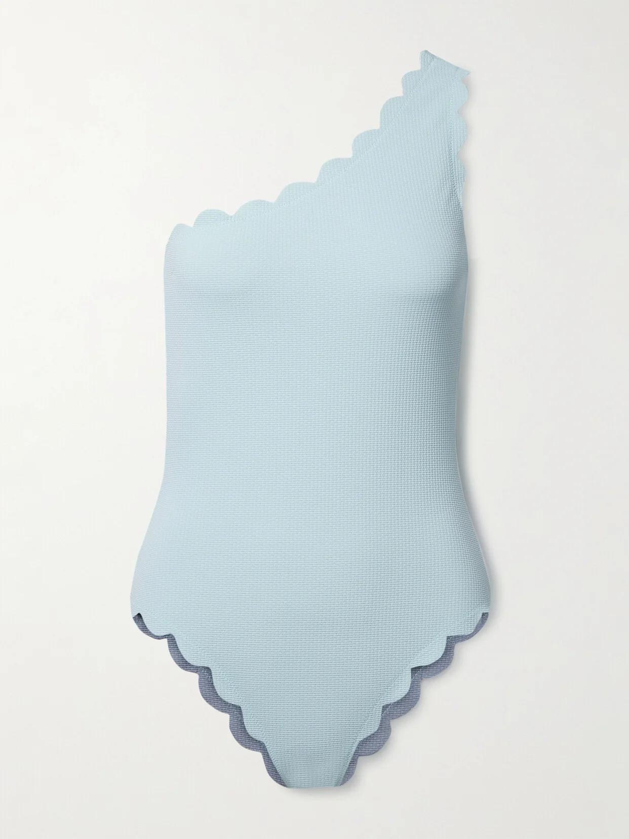 Santa Barbara Reversible One-shoulder Scalloped Seersucker Swimsuit