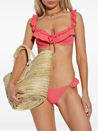 ruffled-trim bikini top Highlights - Pink - Waffle-textured - Ruffled trim - Tie fastening - Decorative centre bow - Adjustable straps Imported Composition Outer: Recycled Polyamide 86% Elastane 14% Washing instructions Read Manufacturer Guidelines