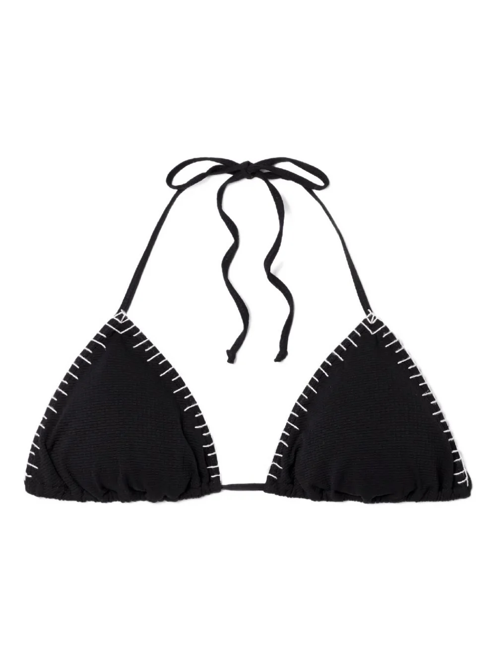 Sole triangle bikini top Highlights - Black - Triangle cups - Textured - Contrasting embroidery - Be mindful to try on swimwear over your own garments. Imported Composition Polyamide 88%, Elastane 12% Washing instructions Read Manufacturer Guidelines
