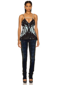 - 76% cotton 24% post consumer recycled cotton - Made in UK - Machine wash - Back button closure - Adjustable shoulder straps - Midweight denim fabric with intentional discoloration throughout - Revolve Style No. MPOP-WS3 - Manufacturer Style No. MPAW24-212