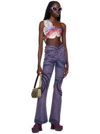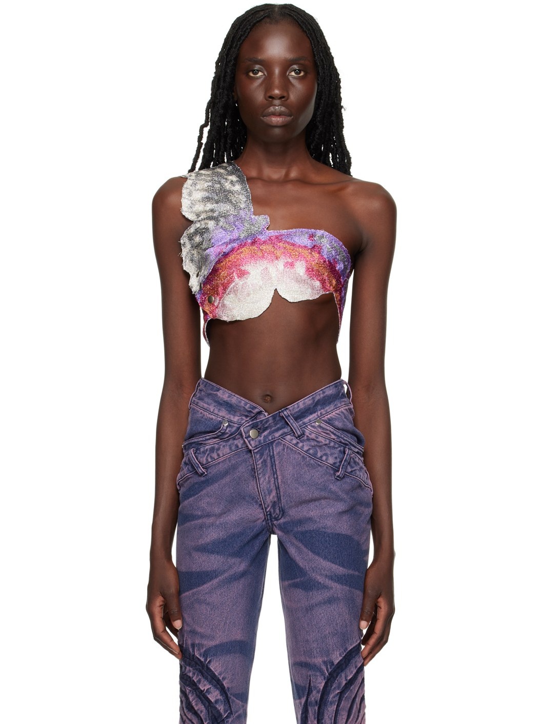 Felted Oeko-Tex®-certified nylon- and metallic polyester-blend tank top. Raw edges, graphic embroidered detailing, and metallic thread detailing throughout. · Single-shoulder construction · Press-stud closure at side seam and shoulder · Unlined Available exclusively at SSENSE. Supplier color: Lilac sparkle