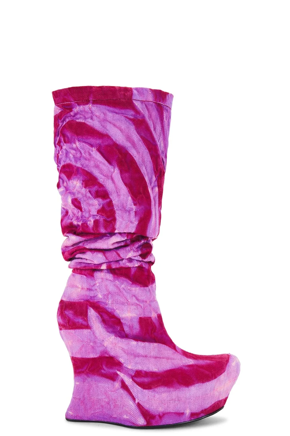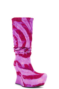 - Twill upper with manmade sole - Made in Portugal - Pull-on styling - Leather footbed with textile lining - Approx 115mm/ 4.5 inch wedge Approx 50mm/ 2 inch platform Approx 406mm/ 16 inch shaft Shaft measures approx 15.7" in circumference - Revolve Style No. MPOP-WZ3 - Manufacturer Style No. MPAW24-705