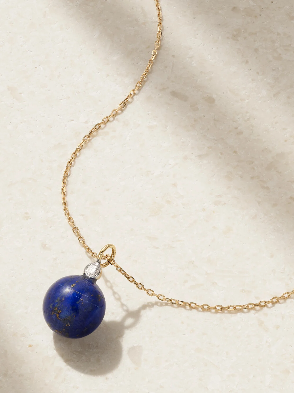 Mateo founder Matthew Harris told us he always carries around a notebook to sketch designs when he feels inspired throughout the day. Strung with a vibrant lapis lazuli - a stone believed to have healing properties - this necklace is handcrafted from 14-karat gold and punctuated with a tiny bezel-set diamond for just the right amount of sparkle.
