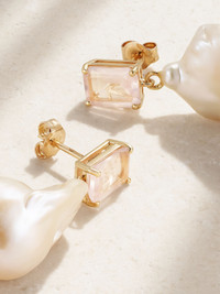 14-karat gold, pearl and rose quartz earrings Gold