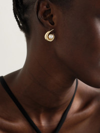 Mateo's earrings are cast in a curled, vintage-inspired shape with a lustrous freshwater pearl nestled at the center. Made from 14-karat gold, they'll work perfectly for both formal and casual occasions alike. Details & Care - Butterfly fastening for pierced ears - Freshwater pearl: China - This piece has been certified in accordance with the Hallmarking Act 1973