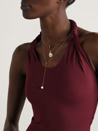 Mateo's necklace has a minimalist design that will effortlessly elevate both day and evening looks. It’s been handmade in New York from 14-karat gold and strung with a sleek curved pendant accented by a single freshwater pearl. Details & Care - Lobster clasp fastening - Freshwater pearl: China - This piece has been certified in accordance with the Hallmarking Act 1973