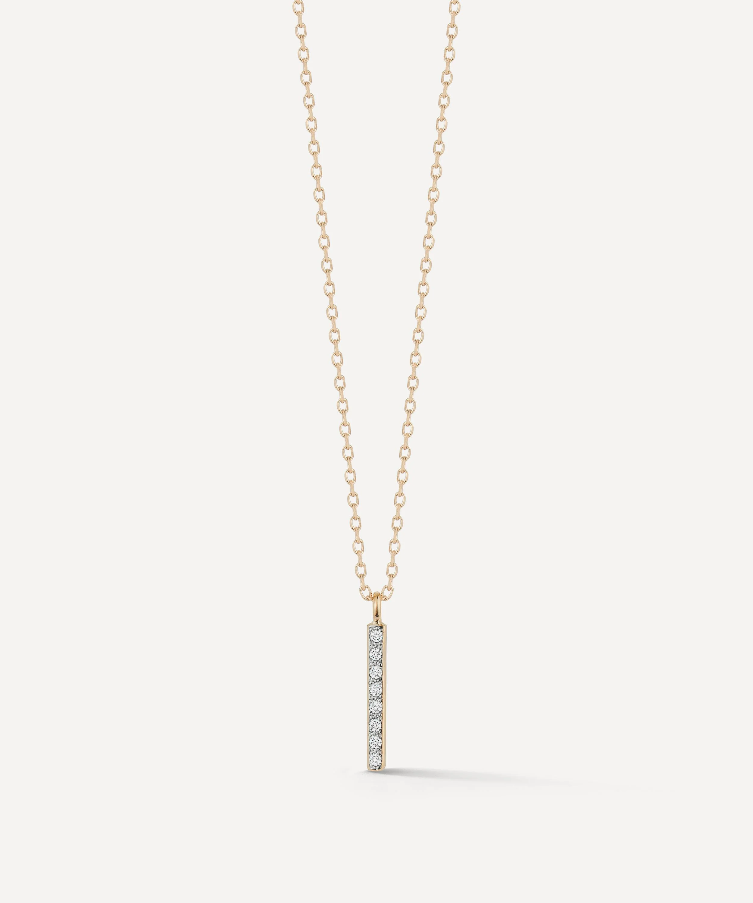 DETAILS Pendant necklace 14ct gold Diamond set bar pendant Fine cable chain Lobster clasp fastening Made in New York COMPOSITION & SIZE 14ct Gold; 0.07ct Diamond Chain L: 40cm (5cm extender)