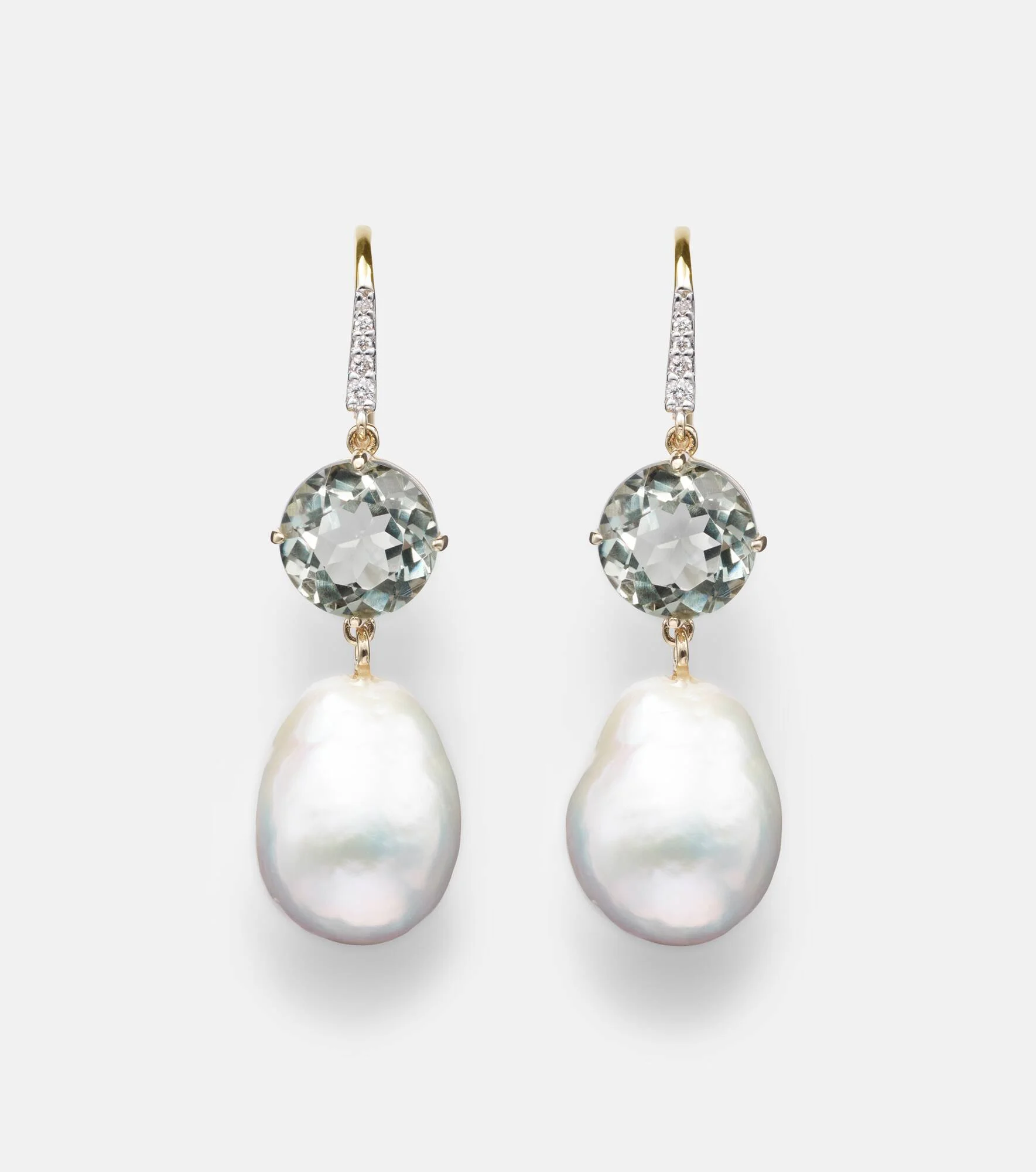 Born out of a genuine love for the art of jewelry, Mateo designs timeless pieces with a modern outlook. These exquisite drop earrings are meticulously made from 14kt yellow gold and feature one-of-a-kind baroque pearls complemented by dazzling green amethysts and delicate diamonds. Showcasing expert artistry, this pair is a perfect match for everything from everyday looks to special occasion ensembles. Product Details - Material: 14kt yellow gold - Made in the USA - Item color: gold - Stone I: amethysts, 0.072ctw, prong setting - Pearl I: Baroque shape - Closure: post-back fastening - For pierced ears - Item number: P01115398 Size & Fit - Length 42mm-1.65" - Max. width 12mm-0.45"