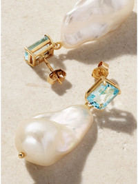 Mateo expertly pairs its pearls with sparkling gemstones to bring out their natural luster. Handmade from 14-karat gold, these earrings have lustrous baroque ones contrasted by emerald-cut blue topaz studs. Style your hair half-up to show them off. Details & Care - Blue topaz - Butterfly fastening for pierced ears - Pearls: China