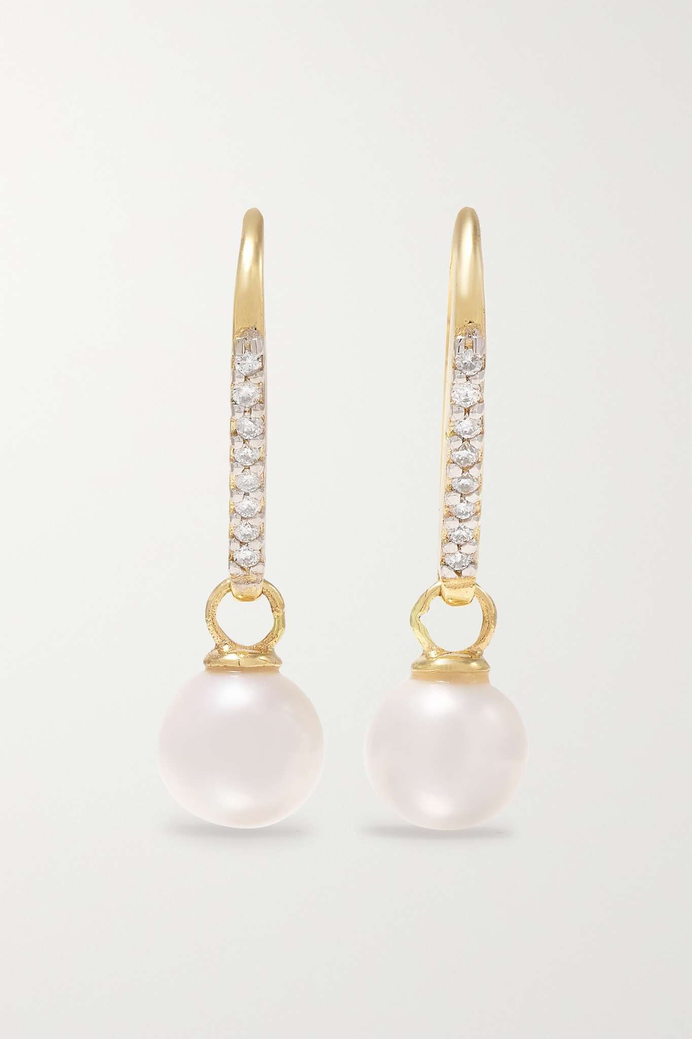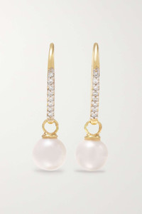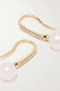 EDITORS'NOTES On a recent visit to our U.S. studio, Matthew 'Mateo' Harris told us that most of his inspiration comes from everyday people walking the streets of New York City, where the brand is headquartered. Handmade from 14-karat gold, these earrings are dusted with shimmering diamonds that beautifully illuminate the lustrous pearl drops. Wear yours for day or night.<br><br>Shown here with: [Equipment Tank id1203595]. SIZE & FIT This item's measurements are: - Height: 2cm / 0.8in - Width: 0.5cm / 0.2in - Drop: 2.2cm / 0.9in DETAILS & CARE - Diamonds, total weight: 0.16-carats - Hook fastening for pierced ears - Freshwater pearls: China